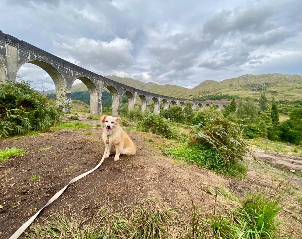 Our final sightseeing spot of the trip was the Glenfinnan Viaduct… More famously known as the Harry Potter Hogwarts bridge. They actually still have a steam train that passes over the Viaduct twice a day in the summer months. We hummed Hedwig’s Theme as we looked up at the bridge’s arches. Cookie felt like a true Gryffindor that day.